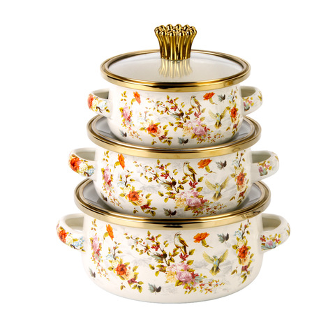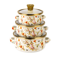 Set pentole in smalto 3 pezzi-pentola a doppio manico con coperchio per stufati e zuppe-pentole per la casa